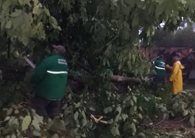 Las secretarías de Delegaciones y de Obras y Servicios Públicos realizaron tareas de corte y acopio de césped, recolección de ramas y residuos, además, la remoción de árboles caídos, limpieza de zanjas y erradicación de pozos crónicos.