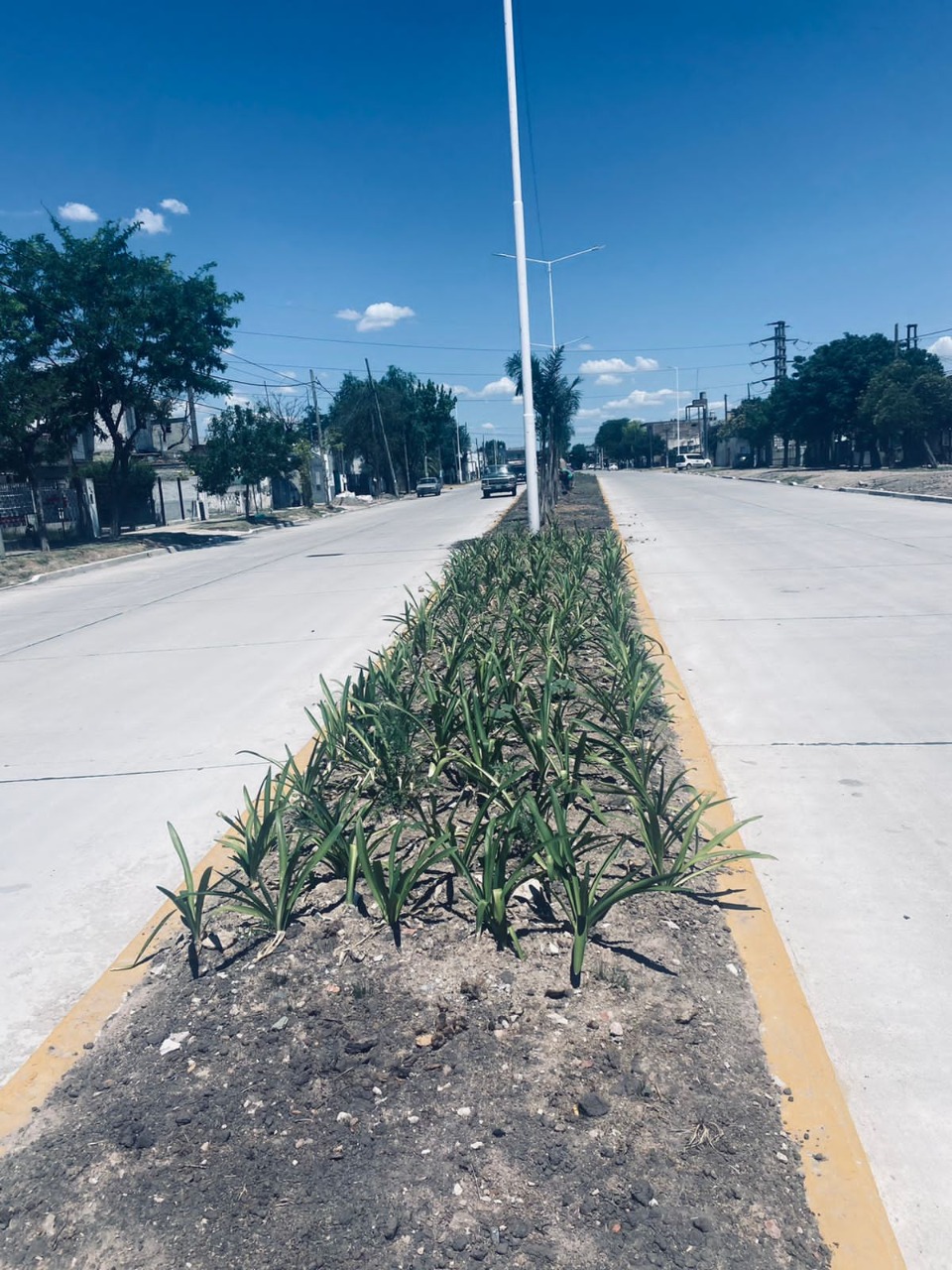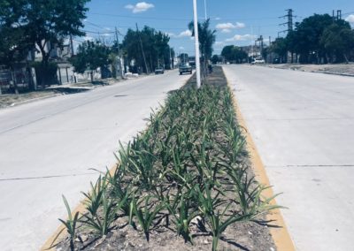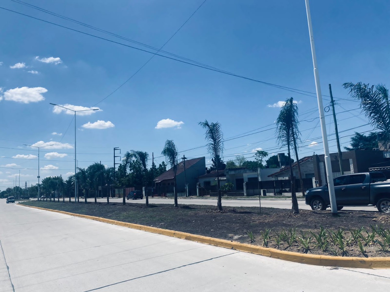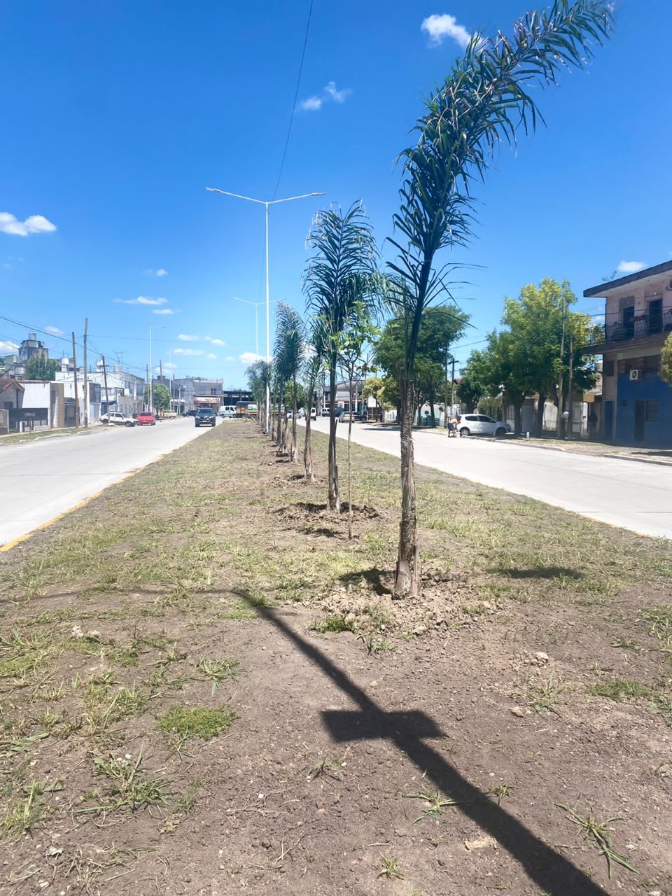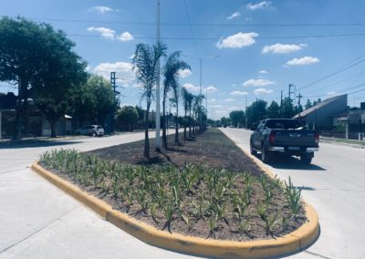 Las cuadrillas de trabajadores realizan la reforestación y puesta en valor del boulevard. Se trabajó en el nivelado de la superficie, se colocaron palmeras y otros ejemplares para ornamentar todo el paseo.