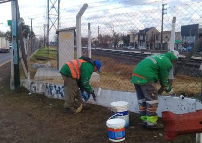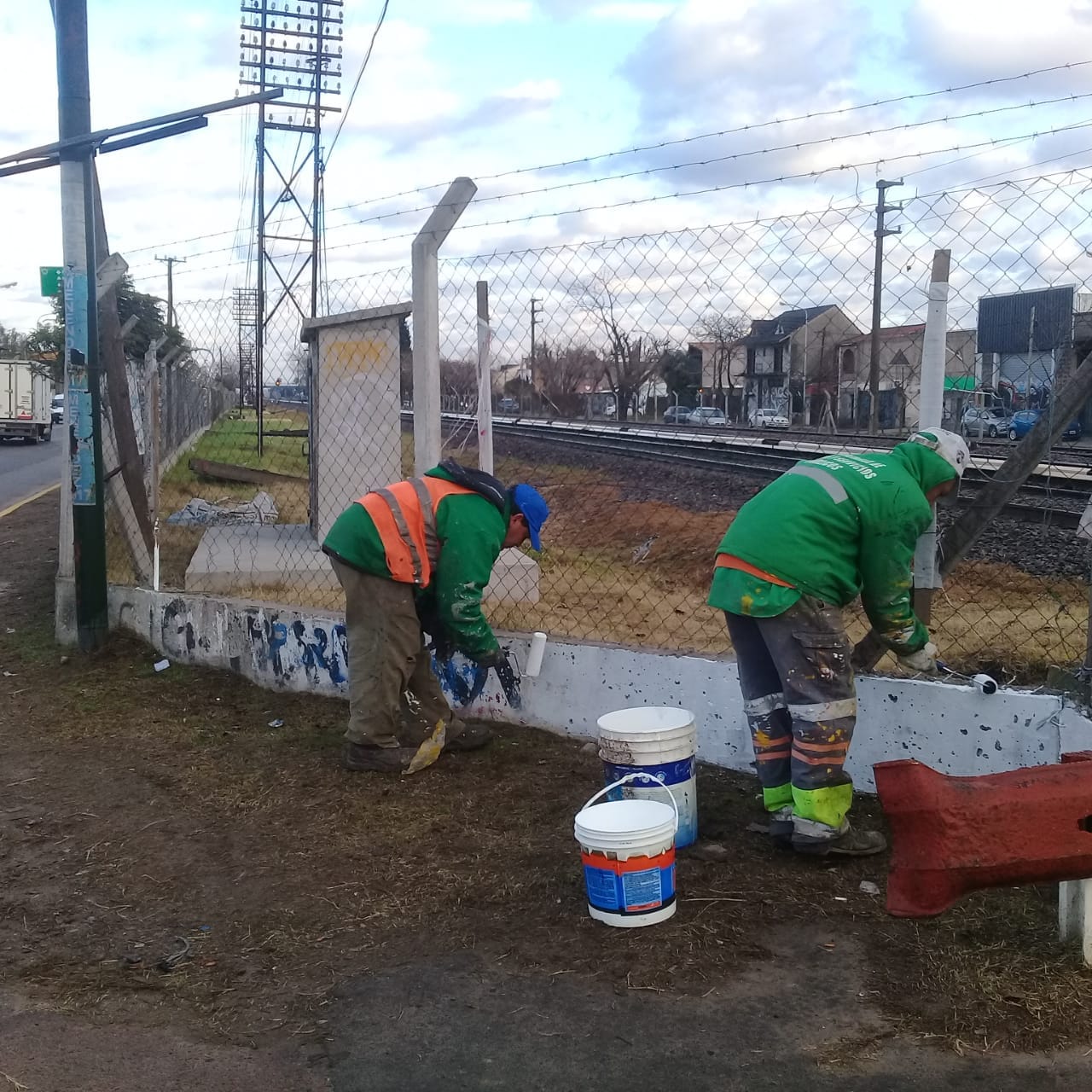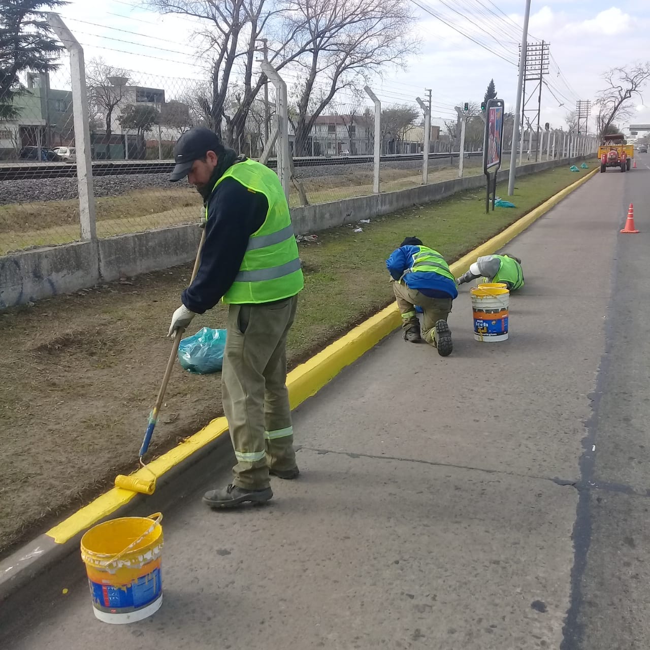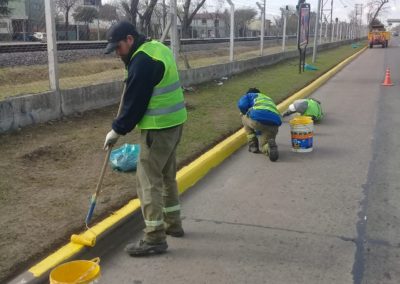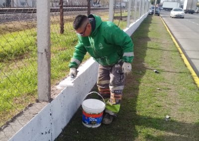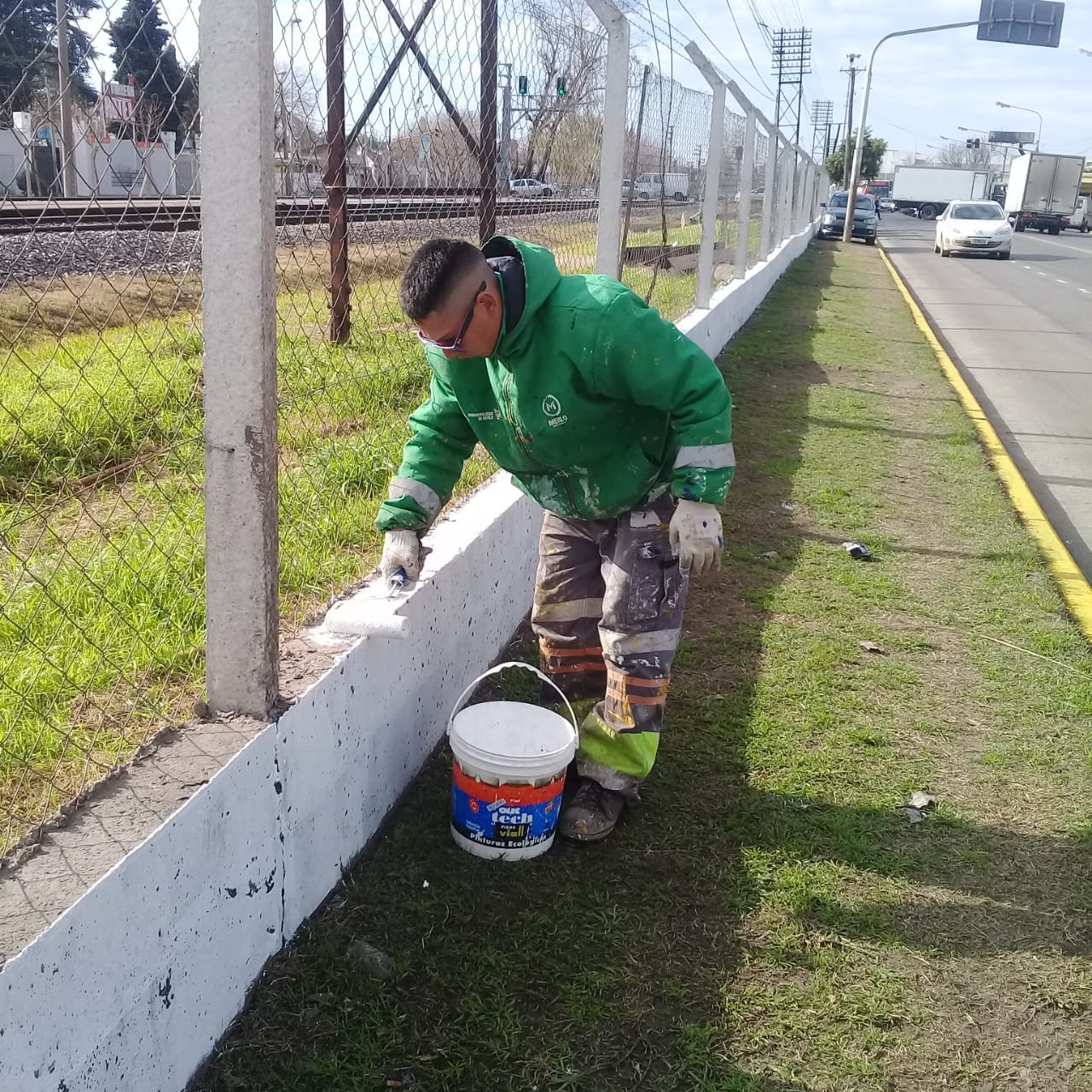 Los trabajos realizados implicaron la renovación de pintura en columnas y postes de alumbrado público, así como también en muros y cordones. Se llevó a cabo también la recolección de residuos, limpieza de la zona, y corte de césped.