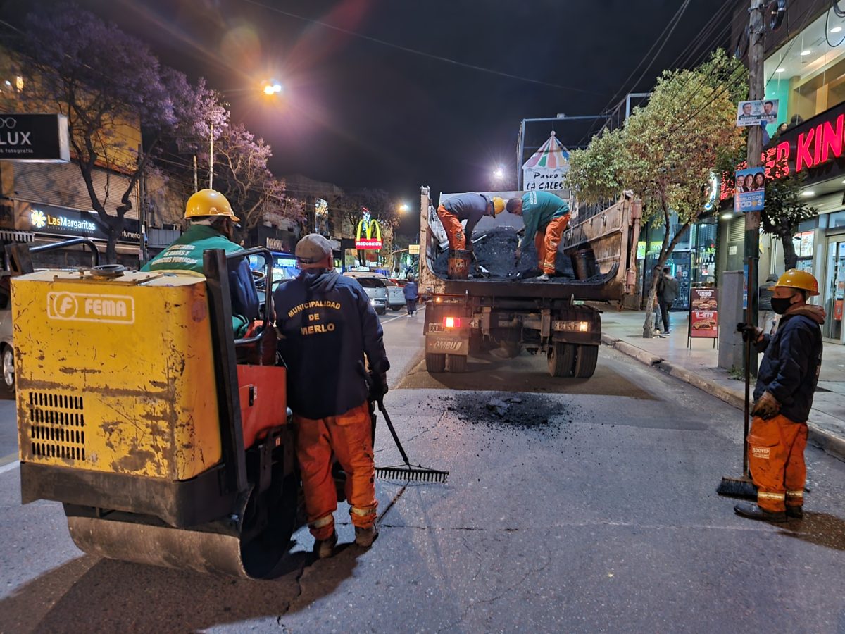 La Secretaría de Obras y Servicios Públicos de Merlo del Gobierno del Pueblo de Merlo realizó tareas de reparación de pavimento sobre la Avenida del Libertador y calles aledañas.