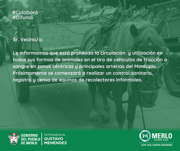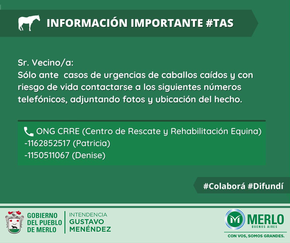 La Secretaria de Delegaciones junto a ONG CRRE (Centro de Rescate y Rehabilitación Equina) trabajan para erradicar la tracción a sangre animal en Merlo.