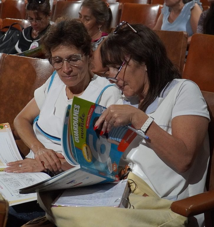 La Subsecretaría de Educación en articulación con la Editorial Santillana brindó una capacitación para los docentes del distrito, previo a la entrega de manuales, “Guardianes del Mundo”, destinados para todos los estudiantes de las escuelas de Merlo.