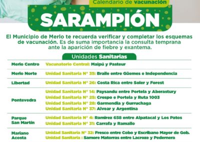 - MERLO CENTRO: Vacunatorio Central – Maipú y Pasteur / Teléfonos: (0220) 482-9116 / 483-3676