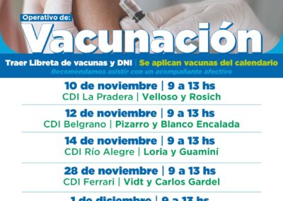 Se recomienda llamar previamente a los vacunatorios para consultar disponibilidad de vacunas y horarios.