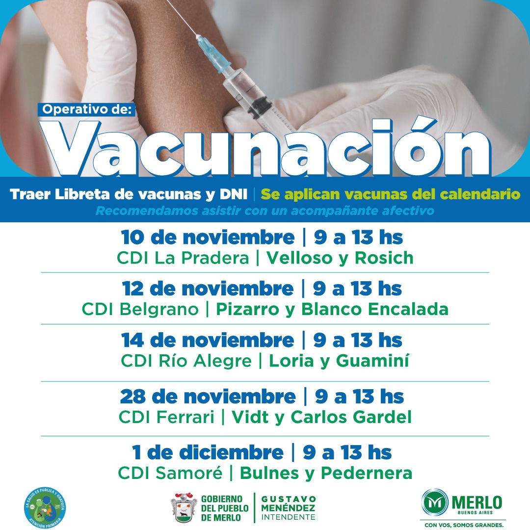 Los vecinos de Merlo pueden acercarse a los vacunatorios y actualizar sus esquemas de vacunación de forma gratuita.