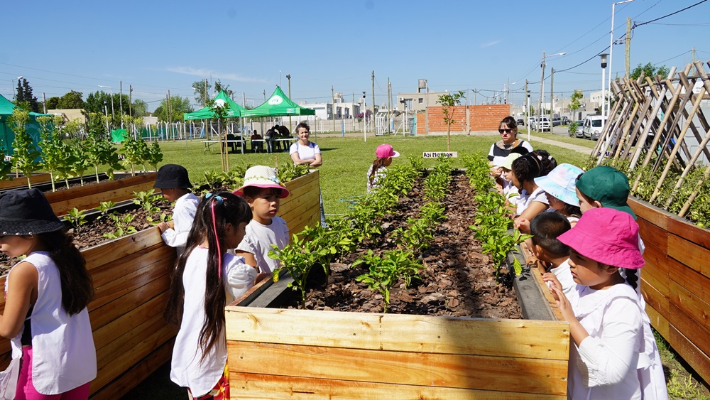 Estudiantes de la Escuela N°55 “Provincia de Río Negro” de Pontevedra, recorrieron el Parque Ambiental del Barrio Procrear de Parque San Martín, donde participaron de talleres de huerta, compostaje y reciclado.